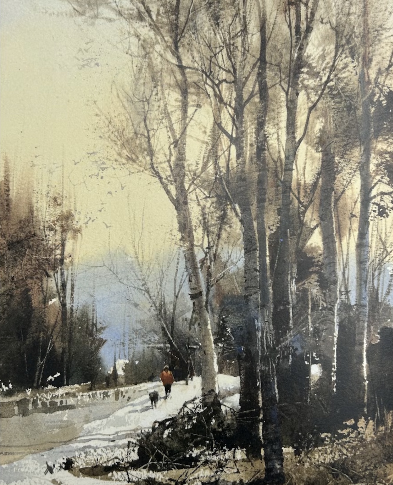 Some of his light is created through negative painting, but he also routinely uses gauche after laying in his first wash.